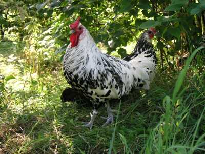 Es handelt sich dabei um Hamburger - Hühner und die kleinen, rebhuhnfarbigen sind Zwergwelsumer. Letztere legen erstaunlich große Eier, ohnehin sind es treue, zuverlässige